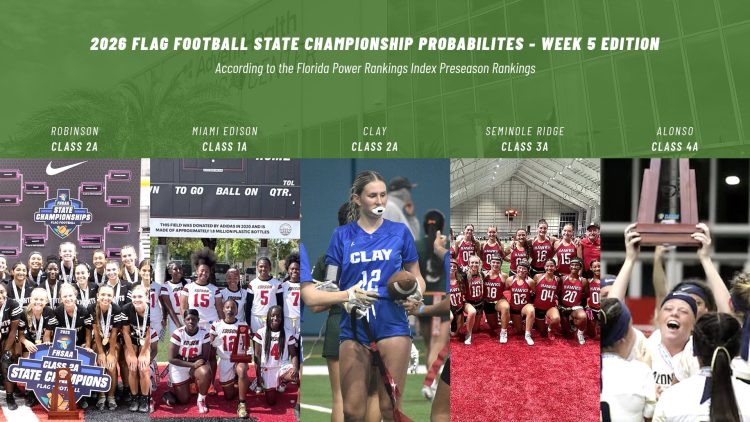 Using the Florida Power Rankings Index (FPRI), we combine a two-year historical performance blend with strength of schedule, district placement, and projected playoff paths to calculate each team’s probability of winning a state championship. Teams can reach the postseason by winning their district tournament or earning an at-large berth, and our model accounts for both…